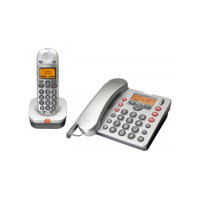 Combined set including a Cordless and a Corded telephone with integrated answermachine with up to 11 minutes recording capacity. The Amplicom BigTel 480 has an impressive amplification of up to +30 dB on the receiver and up to +80 dB on the ringer, making this telephone set ideal for those who are hard of hearing or use a hearing aid.