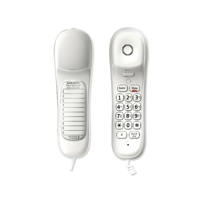 The BT Duet 210 corded telephone is an affordable but elegant small gondola phone that is will sit on a desk or table or is wall mountable. It has a light that flashes when you have an incoming call. It is also fitted with an inductive coupler so it is hearing aid compatible
