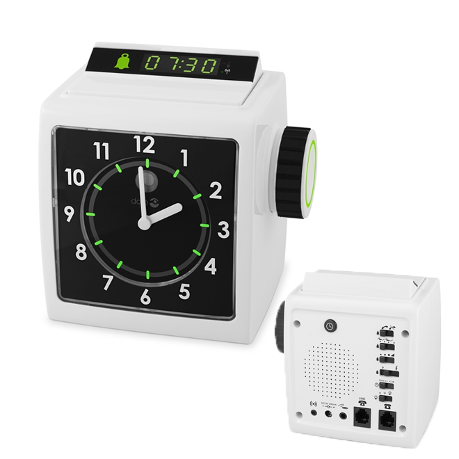 Loud, ascending wake up alarm May also be connected with phone line to use as a ringer amplifier for your phone Features automatic radio-controlled time adjustment |