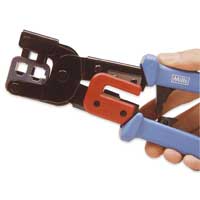RJ11 and RJ45 crimper Ratchet action for a more secure crimp |