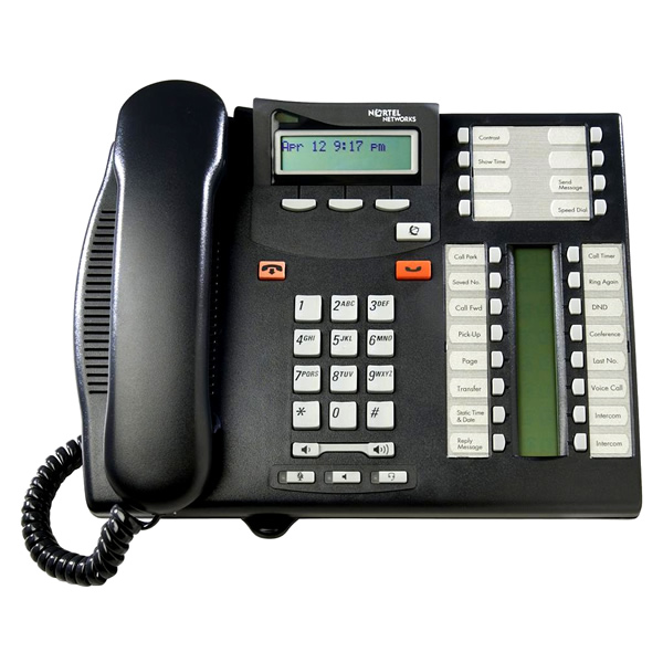 Nortel Networks T7316E Business Series Terminal refurbished in Charcoal Black. The Nortel Business Series Terminals T7316E Charcoal is a full-featured, expandable, multi-line telephone that has a two-line, 16-character-per-line display that is menu driven and supported by three context-sensitive soft keys. The T7316E Charcoal provides access to 24 memory buttons, 16 of which include multi-segment icons for fast and precise decision making. It is designed for high call volume positions requiring access to extensive system features. Typical users include supervisors, managers, executives, and other business professionals.