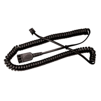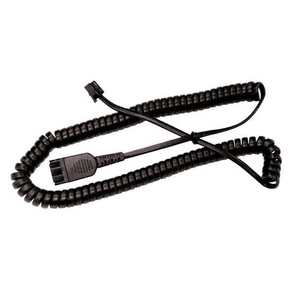 At one end of this lead is the Quick Disconnect plug (QD) which connects to the QD socket at the end of the Radius headset, it is called quick disconnect as you can quickly disconnect it from the headset if you need to move away from your desk phone during a call and reconnect it when you return to your desk phone to continue the call. The other end of the cable is an RJ11 plug and connects to a standard modular telephone jack on the phone. The RJ11 socket is the most common socket used on corded telephones today.
