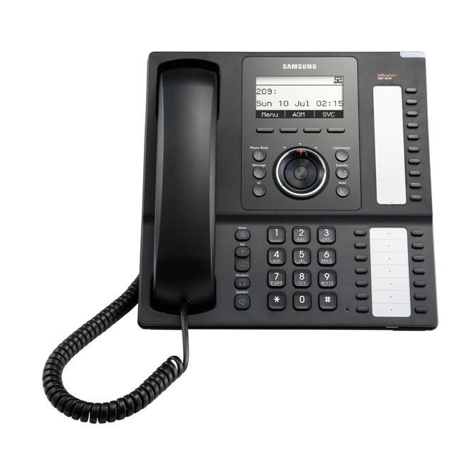 The SMT-i5200 series IP telephone supports the full feature set OfficeServ7000 and added UC (Unified Communication) integration in a modern stylish & ergonomic design. This includes an LCD screen, 14 programmable key and direct access to voice mail, call logs and system directory are just a few of the items accessible at the touch of a button giving you a clear window to your communications world.